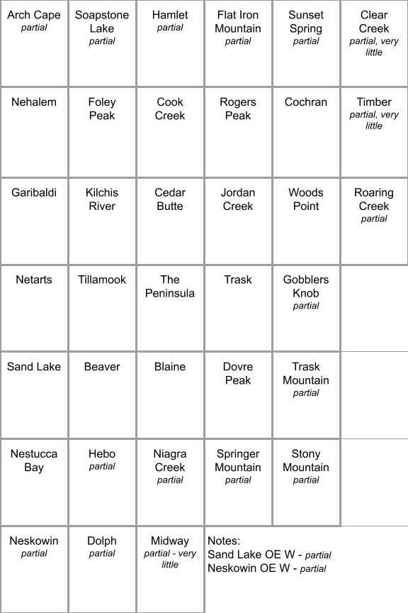 | 18:27, 21 April 2025 | TillCoCharts.png (file) | 62 KB | Bnixon (talk | contribs) | 38 USGS maps that cover portions of Tillamook County | 1 | |